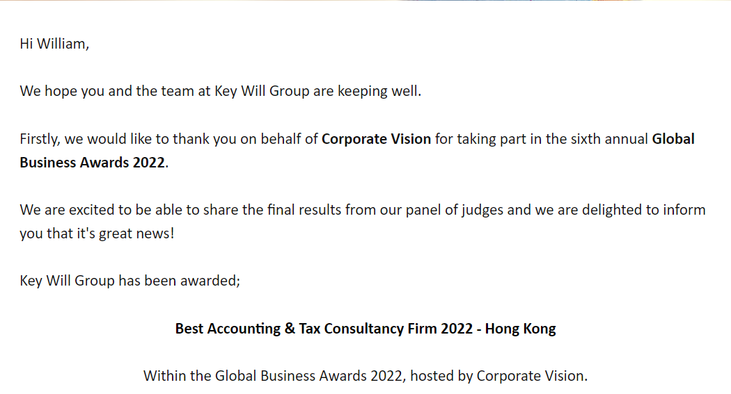 Best Accounting & Tax Consultancy Firm 2022 - Hong Kong (2022年最佳會計及稅務顧問公司 - 香港)